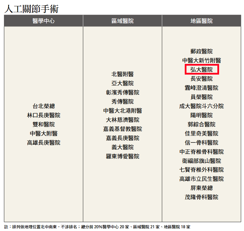 弘大醫院在人工關節手術上表現卓越,在《康健雜誌》評選為 「2025特色醫院」!